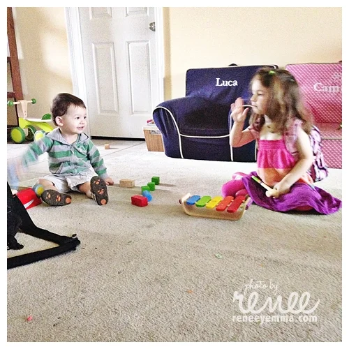 Sunday morning, the kiddos were having some fun playing together. C was singing and Luca played a long with her.