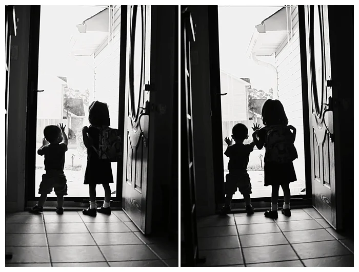When I saw both of my kiddos standing at the door, like this, before leaving, I couldn't help but think to myself, "Yes, this day has finally come. The day I send my little girl out into the big, big world without me. The day I'm SO not ready for!! Waaaaaaaaaaaaaaaaahhhhhhh!!!"